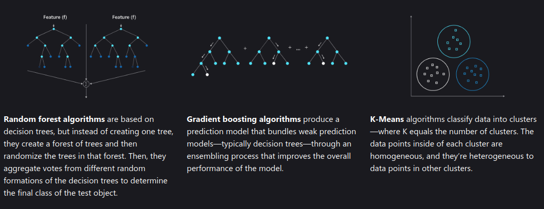 ReinforcementLearning: uses algorithms that learn from outcomes and decide which action to take next.- After each action, the algorithm receives feedback that helps it determine whether the choice it made was correct, neutral, or incorrect.