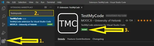 TestMyCodein the search field (see picture point 2). - Press the search result TestMyCode.